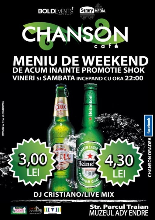 Chanson Café vă aşteaptă cu promoţii shock - vineri şi sâmbătă, începând cu ora 22:00: