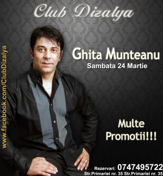 Club Dizalya împreună cu Ghiţă Munteanu vă invită să petreceţi împreună sâmbătă, 24 martie, 2012 o seara de neuitat.