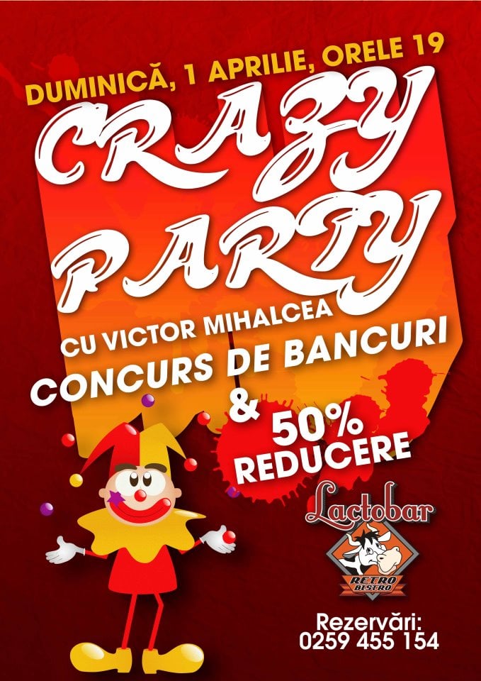 Crazy Party cu Victor Mihalcea în Lactobar Retro Bistro - duminică, 1 aprilie, 2012, începând cu ora 19:00.