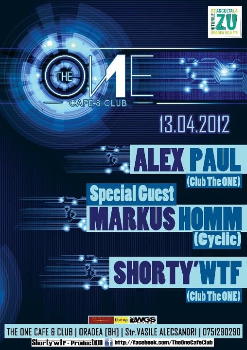 Vineri, 13 aprilie, 2012 clubul The One Café & Club vă aşteaptă la o petrecere incendiară unde, ca invitat special, îl veţi avea pe Markus Homm din Germania şi ca rezidenţi pe Alex Paul şi Shorty'wTF.