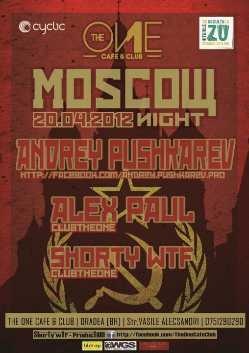 The One Café & Club prezintă: Moscow Night cu Andrey Pushkarev, Alex Paul şi Shorty'wTF - vineri, 20 Aprilie, 2012.