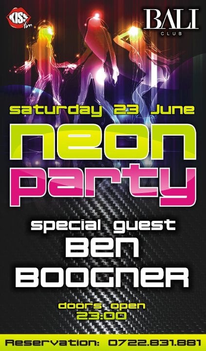 Neon Party cu Ben Boogner în Bali Club - sâmbătă seara, 23 iunie, 2012.