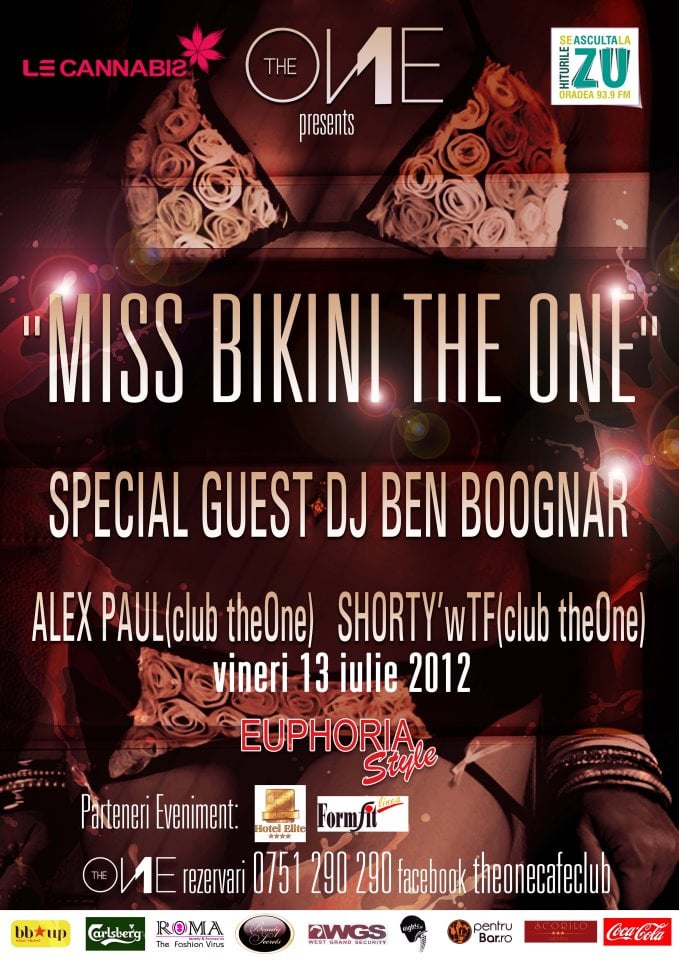 Concurs Miss Bikini The One alături de invitatul special DJ Ben Boognar şi DJ-ii rezidenţi Alex Paul şi Shorty'wTF, vineri seara, 13 iulie 2012.