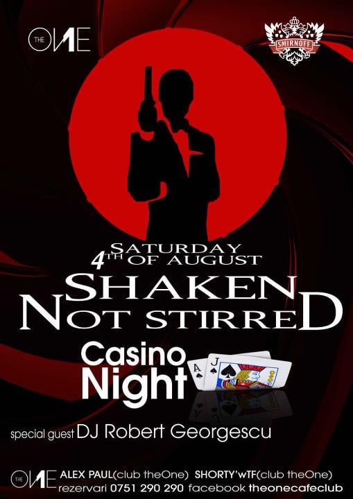 "Shaken, not Stirred" - Petrecere Casino Night în The One Café & Club cu DJ Robert Georgescu - sâmbătă, 4 august, 2012.