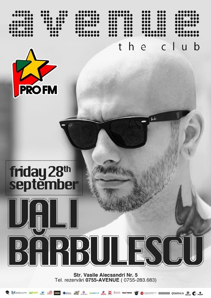 Petreceţi alături de Vali Bărbulescu (Pro FM), doar în Avenue Club - vineri, 28 septembrie, 2012.