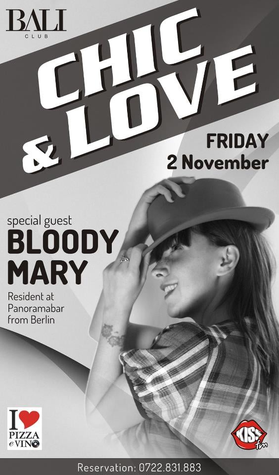 Vinerea următoare Bali Club vă aşteaptă la petrecera "Chic & Love" cu invitatul special Bloody Mary, resident la Panoramabar, Berlin - 2 noiembrie, 2012.