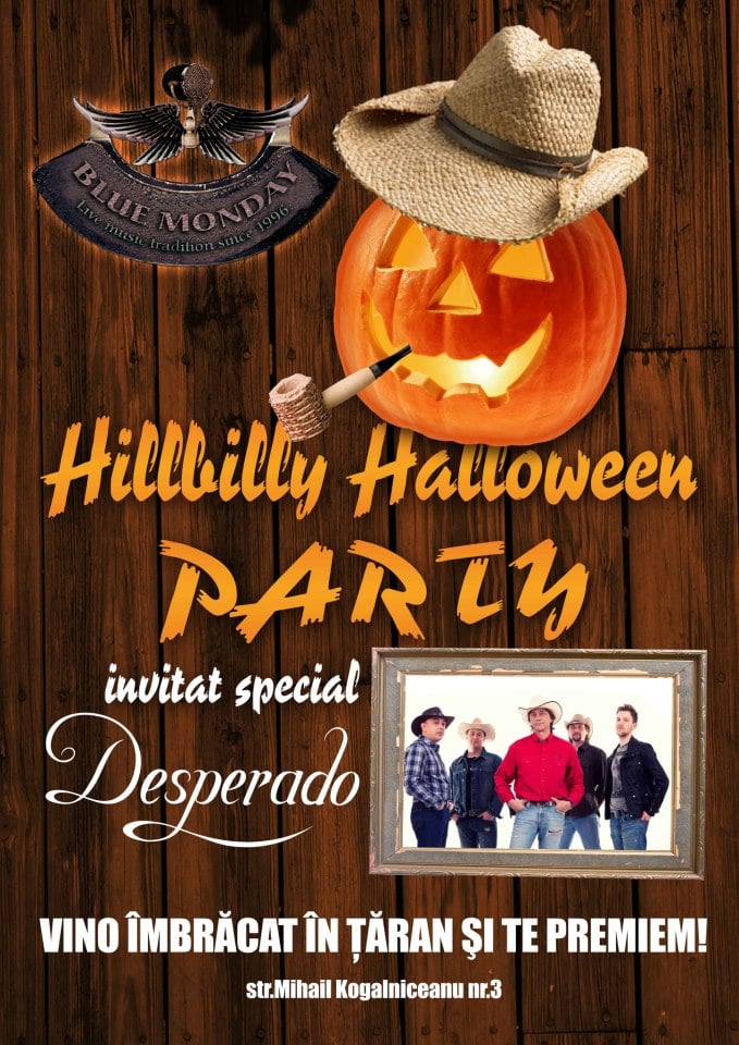 Sâmbătă seara Blue Monday vă aşteaptă la HillBilly Halloween Party alături de trupa Desperado - 3 noiembrie, 2012.