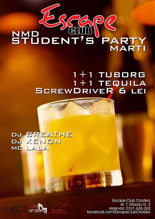 Marţi seara Club Escape vă aşteaptă la NMD Student's Party alături de DJ Breathe, DJ Xenon şi MC Lala.