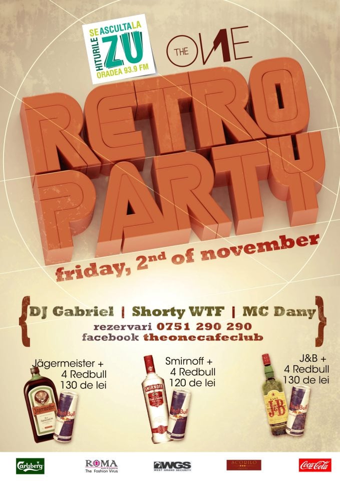 The One Café & Club împreună cu Radio ZU Oradea vă invită la evenimentul Retro Party - vineri, 2 noiembrie, 2012.
