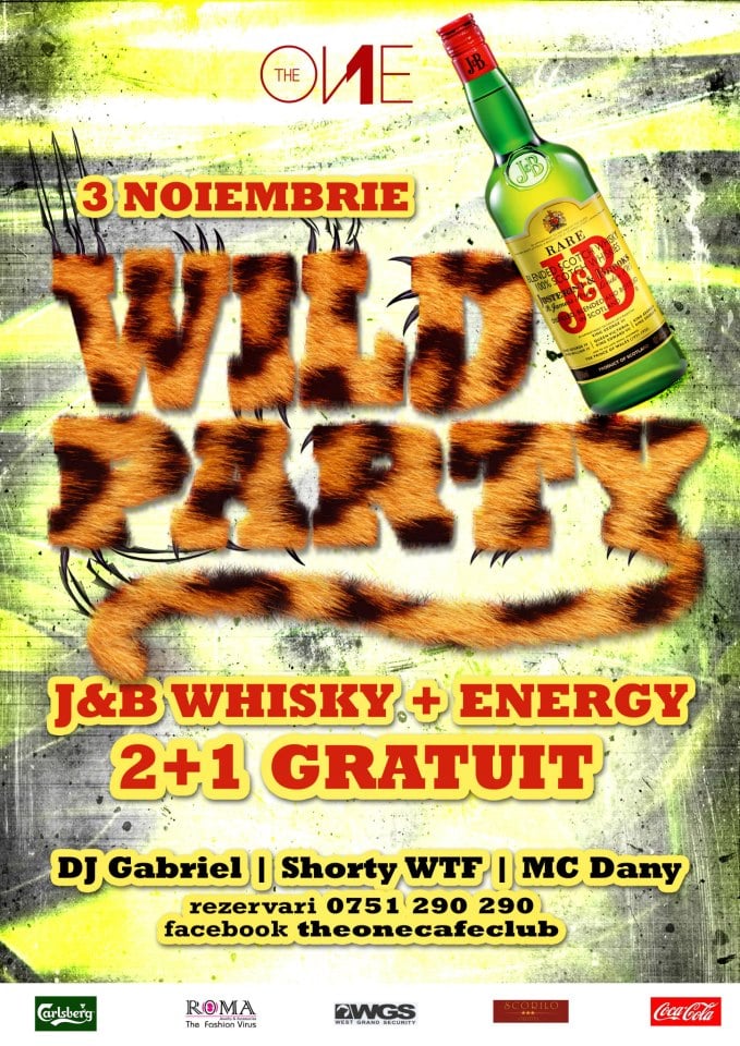 Sâmbătă seara The One Café & Club vă aşteaptă la o petrecere sălbatică - Wild Party cu DJ Gabriel, Shorty'wTF şi MC Dany - în data de 3 noiembrie, 2012.