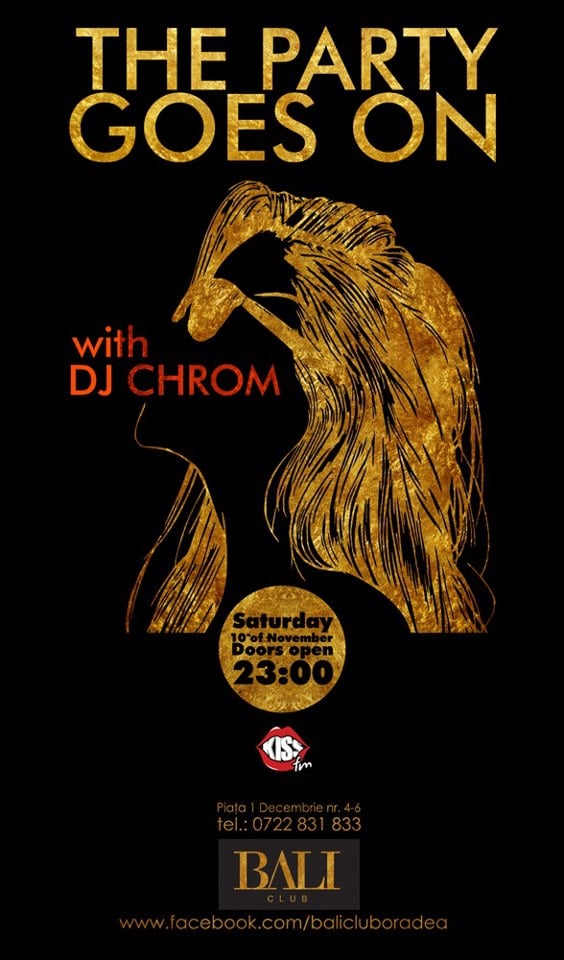 Sâmbătă seara Bali Club alături de DJ Chrom vă aşteaptă la petrecerea The Party Goes On - 10 noiembrie, 2012.