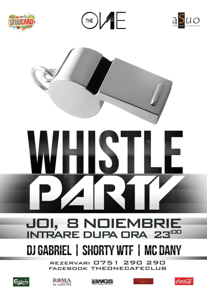 Joi seara The One Café & Club şu ASUO vă aşteaptă la petrecerea Whistle Party cu DJ Gabriel, Shorty'wTF şi MC Dany - 8 noiembrie, 2012.