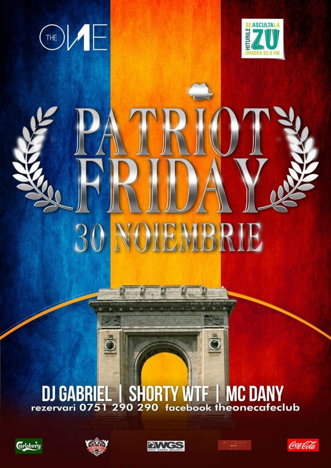 Vineri seara clubul The One vă aşteaptă la o petrecere "Patriot Friday" - 30 noiembrie, 2012.