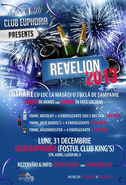 Noul Club Euphoria (fostul King's) de pe strada Aurel Lazăr vă aşteaptă la petrecerea de Revelion 2013 cu muzică bună şi promoţii pe măsură: