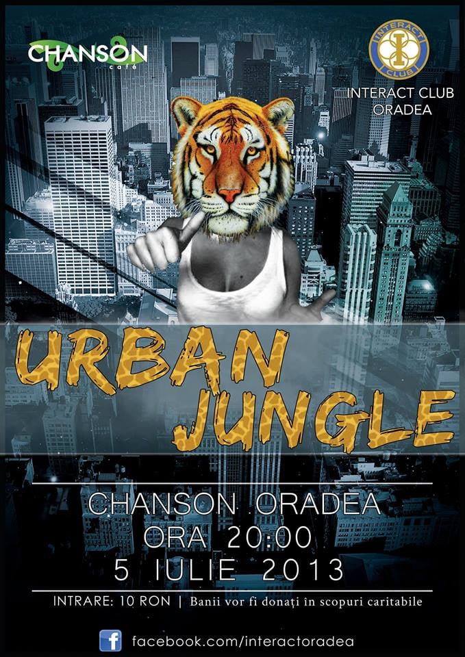 Interact Oradea vă invită Vineri, 5 Iulie 2013, începând cu ora 20:00, în Chanson, la un alt tip de petrecere, "Urban Jungle". Avem oferte la băutură, muzică bună şi măşti tematice ce pot fi achiziţionate la intrare (concepute de membrii clubului nostru: facebook )