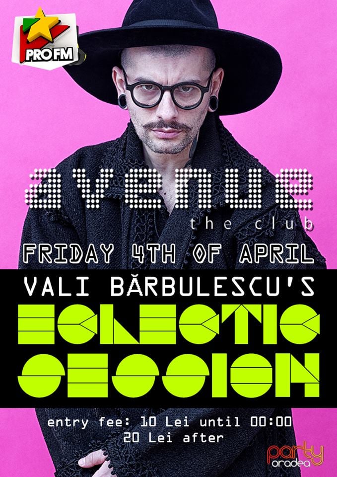 Avenue The Club te invita la Eclectic Session! Vino la un party cum nu ai mai vazut, alaturi de nimeni altul decat Vali Barbulescu!