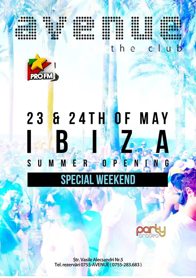 Avenue The Club te cheama la un party tematic! Vino PE 23 SI 24 Mai la Ibiza Summer Opening Special Weekend sa te distrezi pe beat-uri alese din Ibiza pana dimineata! Fa-ti acum o rezervare la 0755-283.683 (0755-AVENUE)