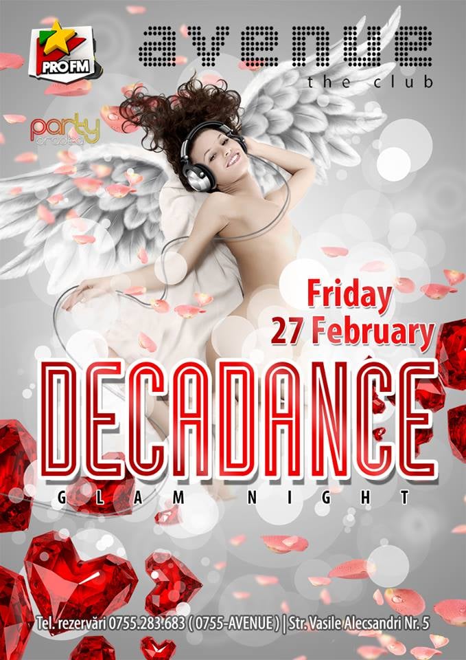 Vineri 27 Februarie, Avenue The Club te asteapta la o super seara de party: DECADANCE GLAM NIGHT! Table booking: 0755-283.683 ( 0755-AVENUE )