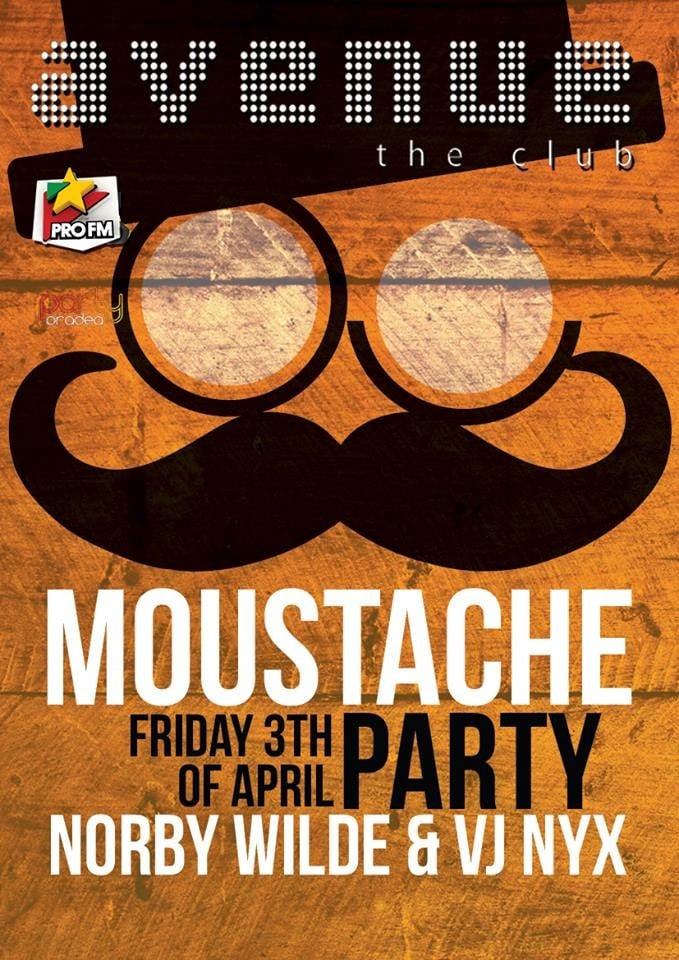 Vineri 3 Aprilie, Norby Wilde si VJ Nyx te asteapta in Avenue The Club cu mustatile pregatite, la MOUSTACHE PARTY! O atmosfera incendiara si accesorii ideale pentru poze si selfie-uri te asteapta in Avenue The Club! Table booking: 0755-283.683 ( 0755-AVENUE )