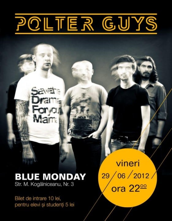 Concertul de debut al trupei alternative pop-rock "Polter Guys" va avea loc vineri seara în clubul Blue Monday de la ora 22:00 - 29 iunie, 2012.