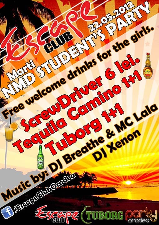NMD Student's Party în Escape Club cu DJ Breathe, DJ Xenon & MC Lala - marţi, 22 mai, 2012.