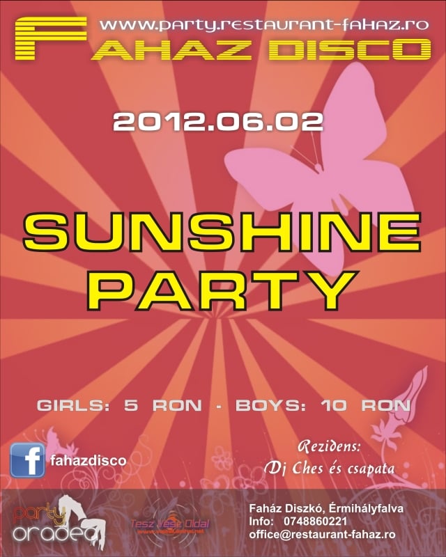 Sunshine Party în Disco Faház cu DJ Ches - sâmbătă, 2 iunie, 2012.