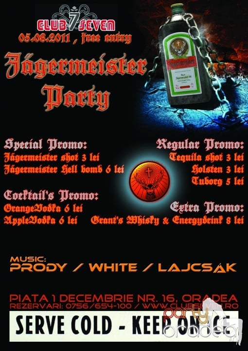 Club Seven vă aşteaptă la Jagermeister Party cu animatoare sexy şi multe, multe promoţii! Vineri, 5 august, 2011. Muzica va fi asigurată de: DJ Prody, DJ White şi MC Lajcsák.