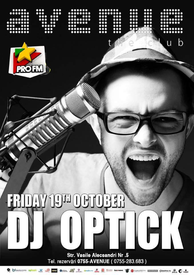 Avenue Club vă aşteaptă alături de DJ Optick la o mega petrecere de calitate - vineri, 19 octombrie, 2012.