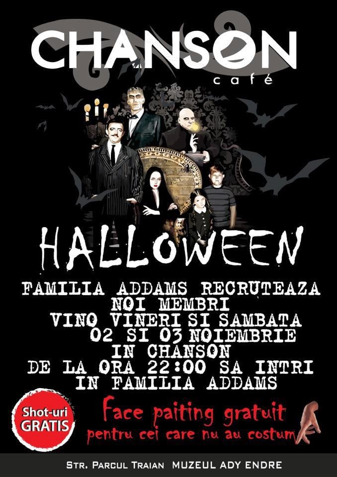 Familia Addams recrutează noi membri! Vino vineri şi sâmbătă, 2 şi 3 noiembrie, 2012 în Chanson Café de la ora 22:00 şi intri în familia Addams.