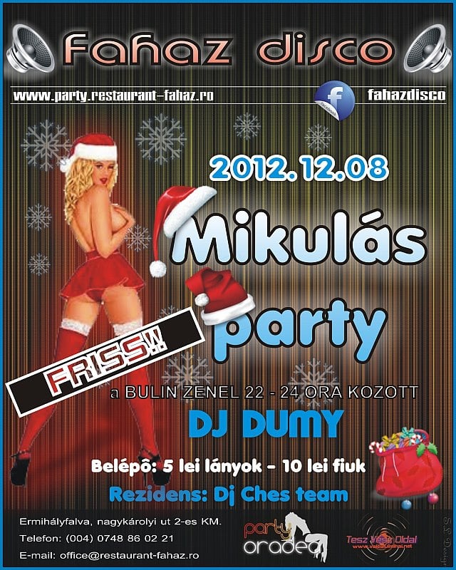 Cu ocazia sărbătorii de Moş Nicolae, Discoteca Faház din Valea lui Mihai vă aşteaptă la petrecerea "Mikulás Party" alături de DJ Dumy - 8 decembrie, 2012.