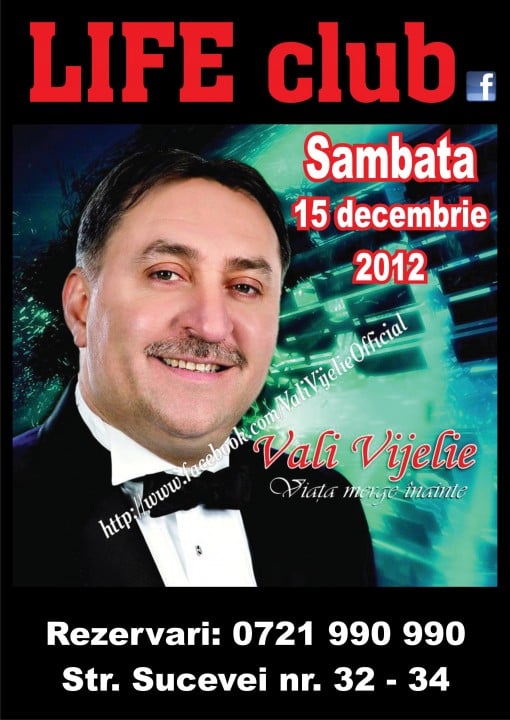 Sâmbătă seara Life Club vă aşteaptă la o petrecere alături de Vali Vijelie - 15 decembrie, 2012.