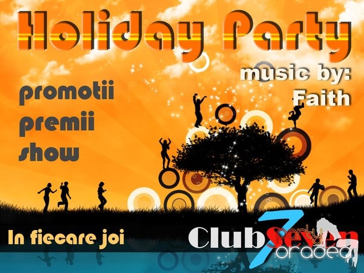 Petrecăreţii din Oradea sunt invitaţi în fiecare seară de joi să se distreze la Holiday Party, o petrecere cu multe promoţii, concursuri şi premii în Club Seven. Muzica şi distracţia bună este garantată de DJ Faith. Intrarea este liberă. -