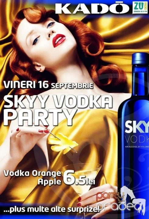 Skyy party în Kadó Cafe cu promoţii irezistibile: Vodka Orange şi Vodka Apple la doar 6,50 lei - 16 septembrie, 2011.