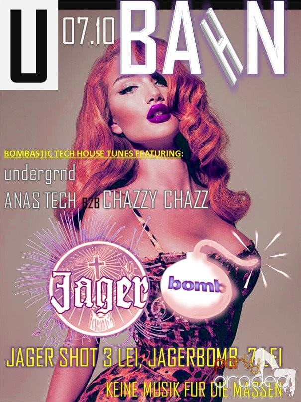 U-Bahn Music und Kaffe vă aşteaptă la Jäger Bomb Party, cu muzică Tech House asigurată de Undergrnd, Anas Tech şi Chazzy Chazz.