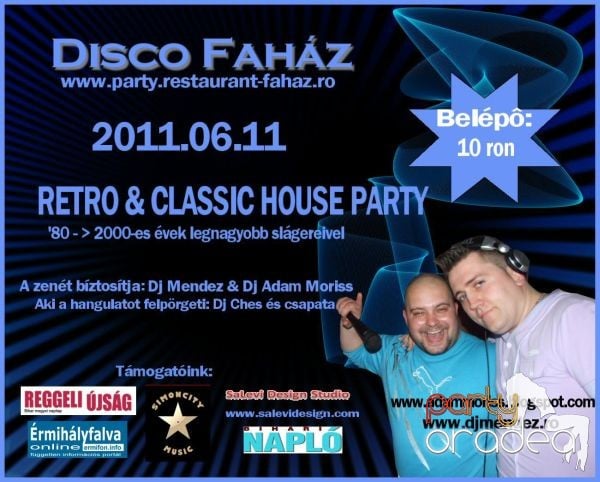 Chef la maxim cu DJ Mendez şi DJ Adam Moriss cu slagărele din anii '80 până în 2000 - discoteca Faház din Valea lui Mihai, 11 iunie, 2011. Responsabil cu atmosfera: DJ Ches & company. Intrare: 10 RON. -