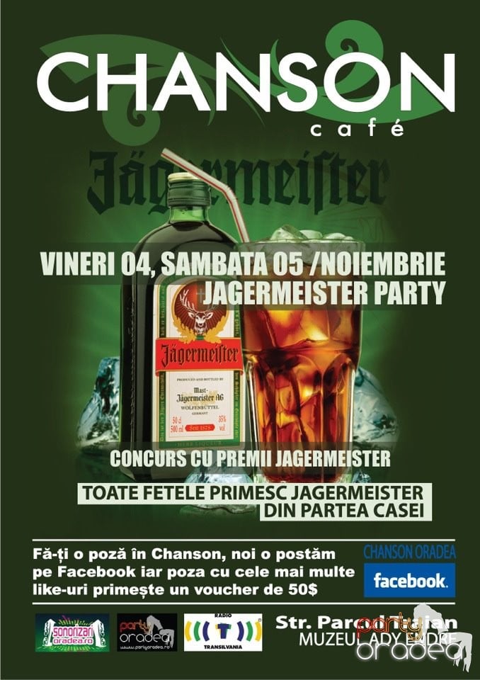 Chanson Café vă invită la Jägermeister Party cu concurs şi cadouri din parte casei vineri şi sâmbătă seara. Intrarea este liberă.