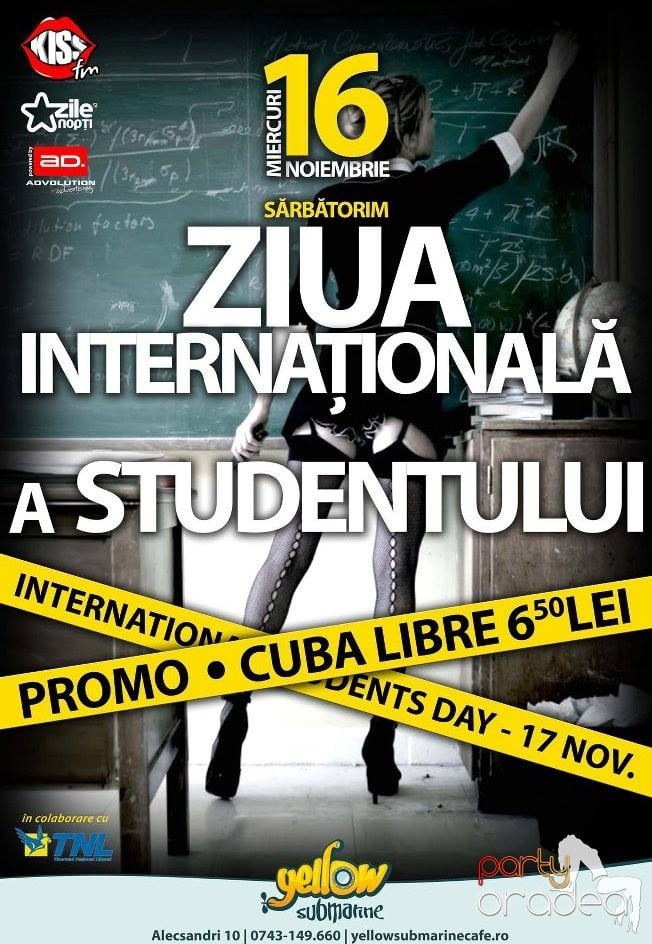 Toţi studenţii sărbătoresc Ziua naţională a studentului în Yellow Submarine Cafe, miercuri, 16 noiembrie, 2011.