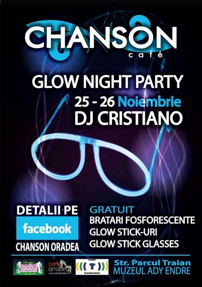 În următorul weekend, 25-26 noiembrie, 2011, Chanson Café vă aşteaptă cu Glow Night Party, cu DJ Cristiano!
