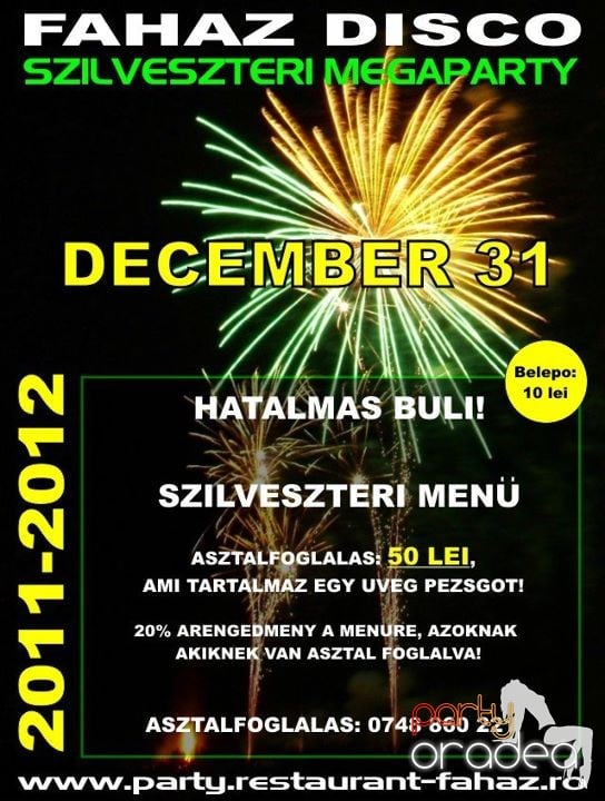 A mihályfalvai Faház Diszkó mindenkit szeretettel vár a 2012-es Szilveszteri Megaparty-ra!