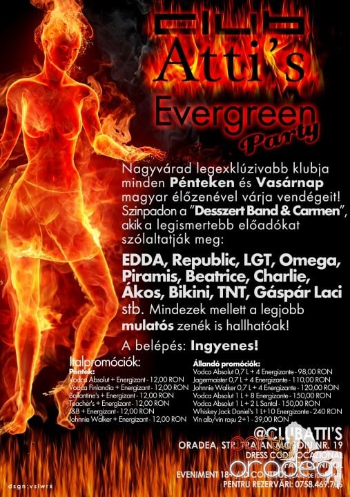 Evergreen Party în fiecare vineri şi duminică în Club Atti's cu multe promoţii şi intrare liberă.
