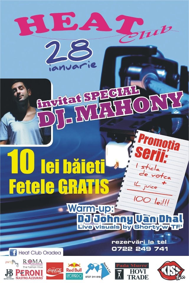 Invitatul special al serii de sâmbătă, 28 ianuarie, 2012 în Heat Club: DJ Mahony!