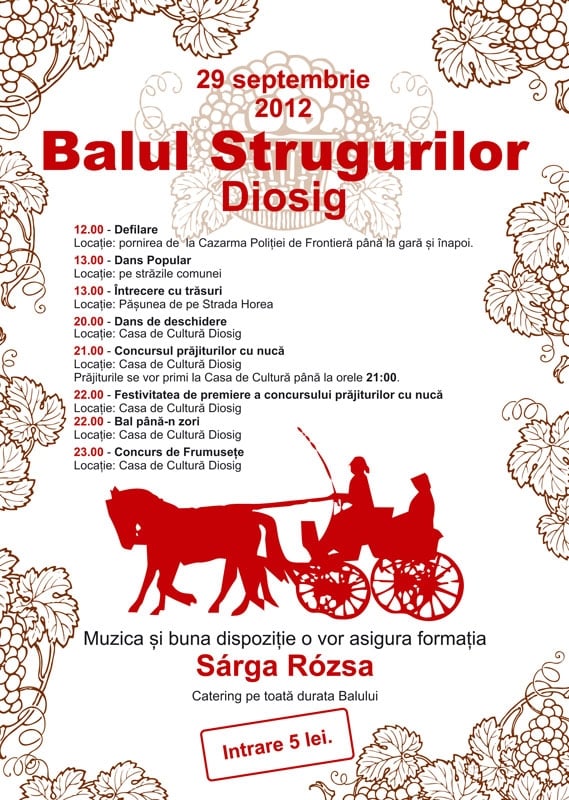 În acestă sâmbătă, 29 septembrie, 2012 va avea loc Balul Strugurilor din Diosig, care va avea următorul program: