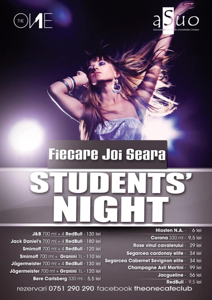 The One Café & Club vă aşteaptă în fiecare joi la Students' Night Party!