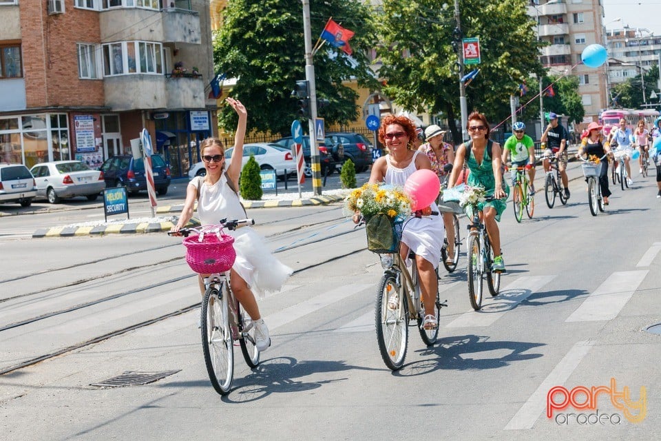 OradeaPeste 100 de femei au pedalat duminică, îmbrăcate în fuste sau rochii, pentru a promova atât mersul pe bicicletă ca stil de viaţă sănătos, cât şi unele dintre cele mai frumoase obiective turistice ale oraşului. Poze realizate în 14 iunie 2015 la Skirt Bike Oradea, ediţia a doua.