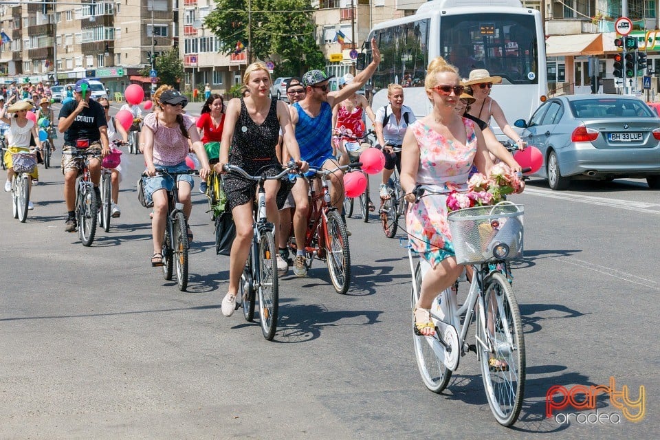 OradeaPeste 100 de femei au pedalat duminică, îmbrăcate în fuste sau rochii, pentru a promova atât mersul pe bicicletă ca stil de viaţă sănătos, cât şi unele dintre cele mai frumoase obiective turistice ale oraşului. Poze realizate în 14 iunie 2015 la Skirt Bike Oradea, ediţia a doua.