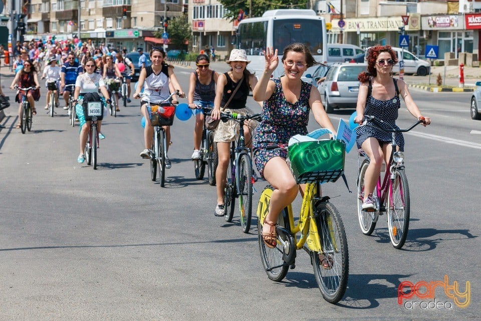 OradeaPeste 100 de femei au pedalat duminică, îmbrăcate în fuste sau rochii, pentru a promova atât mersul pe bicicletă ca stil de viaţă sănătos, cât şi unele dintre cele mai frumoase obiective turistice ale oraşului. Poze realizate în 14 iunie 2015 la Skirt Bike Oradea, ediţia a doua.