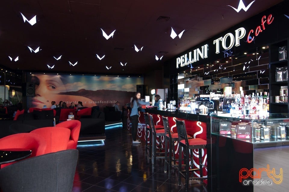 Pellini Top Café, este fara indoiala o cafenea deosebita si inconfundabila, pe gustul oricui, de la atmosfera intima si primitoare, pana la decorul elegant care combina cu mare indemanare culorile negru cu rosu iar designul unic al localului se datoreaza barului placat cu oglinda neagra si aranjamentului de oglinzi asezat in diferite unghiuri.